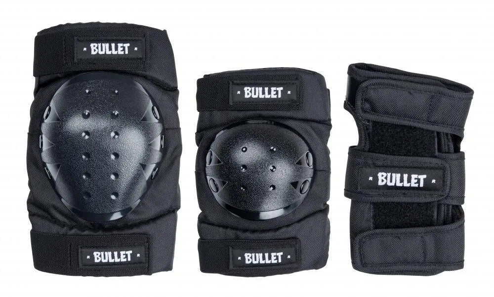 Bullet Skate Pads available in brand new sizing. Combo padsets are now offered in Small, Medium and Large - providing a perfect fit for all sizes. Bullet Safety Gear products are constantly evolving as action sports push new boundaries.