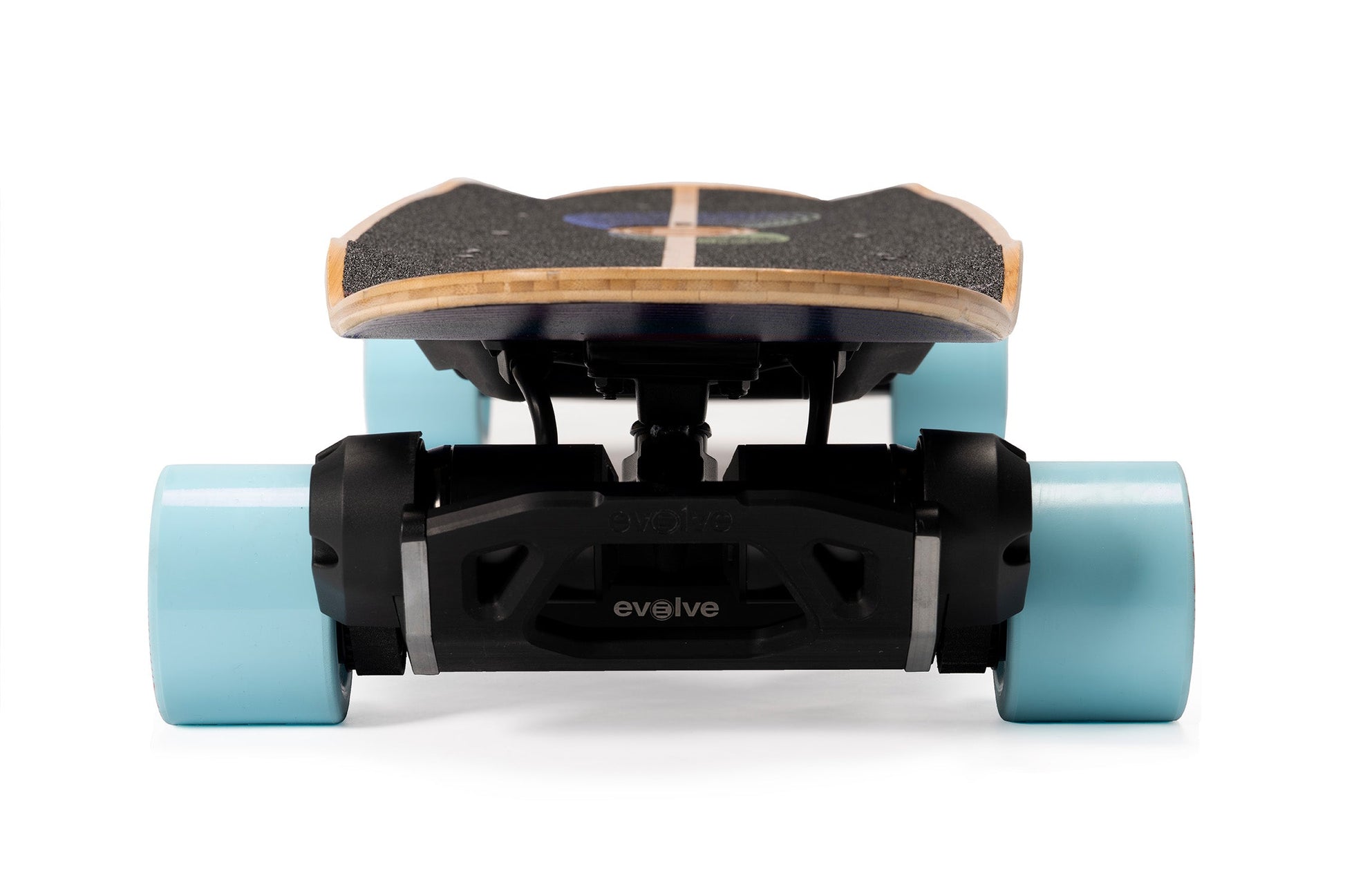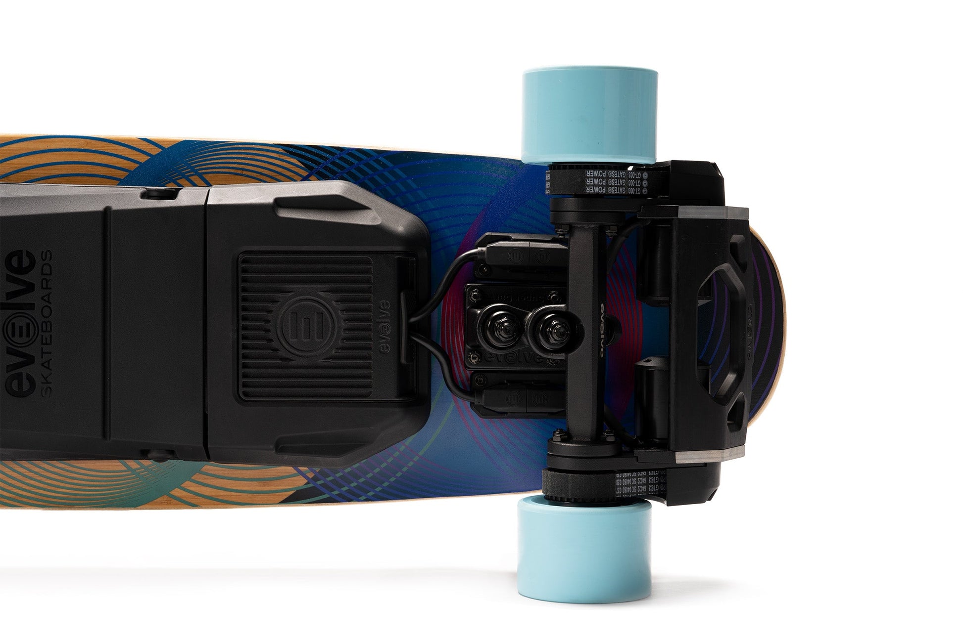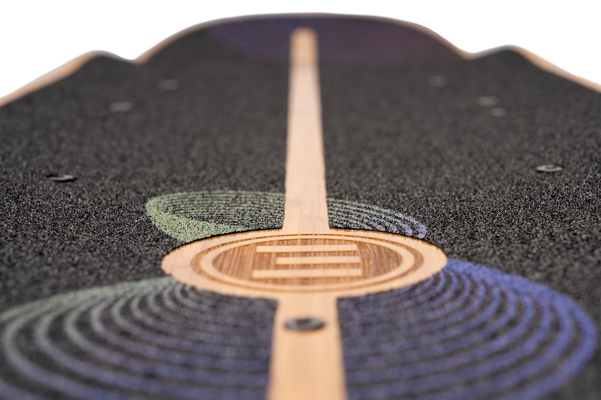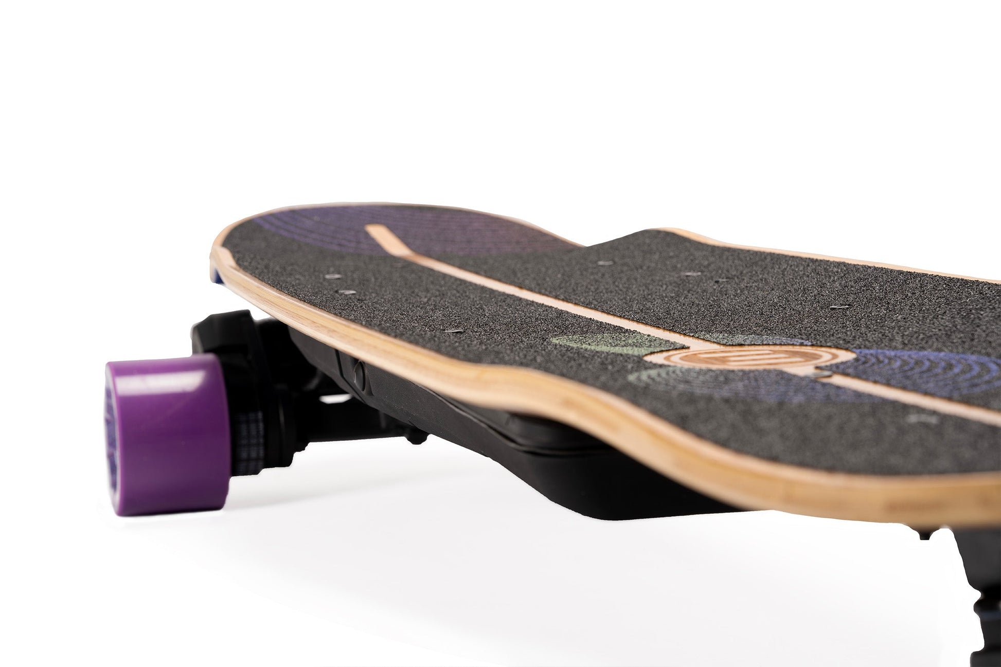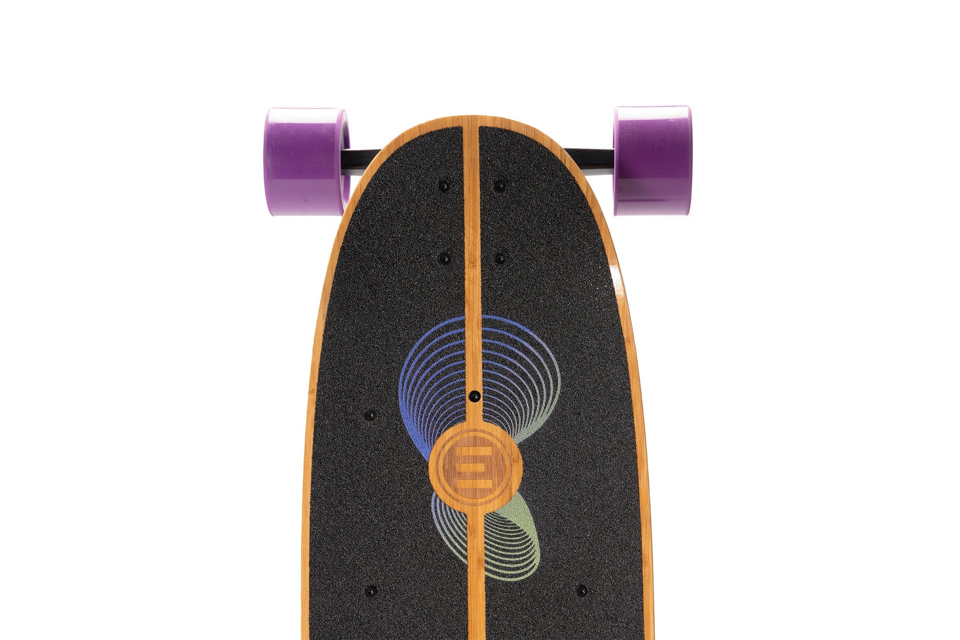 Inspired by the elliptical experiments of progressive surfboard shapers like Tomo and Album, the Onirique's performance-driven outline was created to camouflage highly complex curvatures in a seemingly simple and appealing shape. The graphic design by Nanastudio is meant to evoke the dreamlike quality of the deck name and the riding experience. As a finishing touch, the Evolve logo is laser-etched into the bamboo top sheet, showcasing the partnership between Loaded Boards and Evolve in creating this extraordinary e-skate deck.