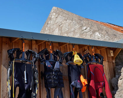 The hanger was designed to prevent neoprene from ending up in landfills. It was made to help surfers, swimmers, and others take care of their gear without damaging it.