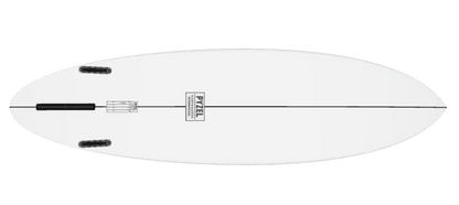 The fin set-up is a 2+1 single box, offering options for single fin or added drive and control with small side-bites. The stock glassing is 4 bottom and 6+4 deck for extra weight and strength.