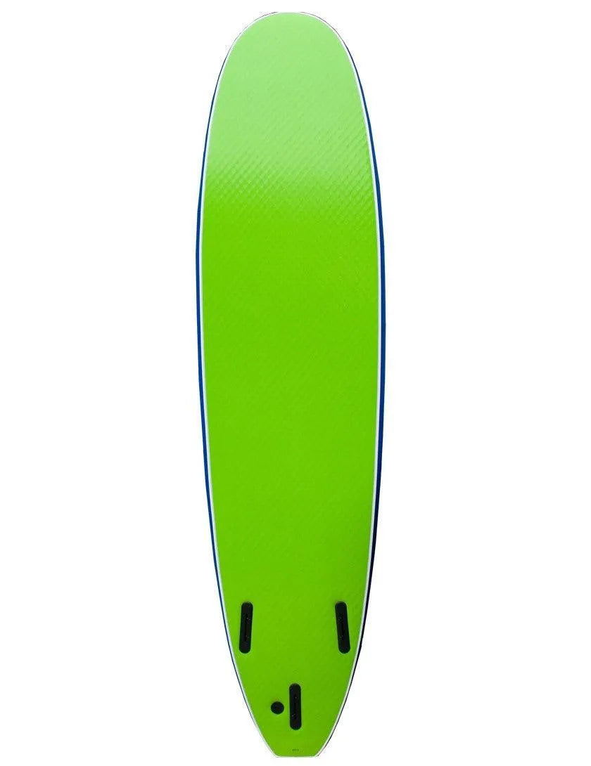 The board also includes double resin coated, laminated wooden stringers that maintain its shape and provide the performance of a high-quality "hard" surfboard. Plus, the slick bottom has an integrated mesh membrane for added durability and improved wave performance. Designed with a three fin set, this board is a major upgrade from the typical 'push through the deck' soft fins found on most foamies.