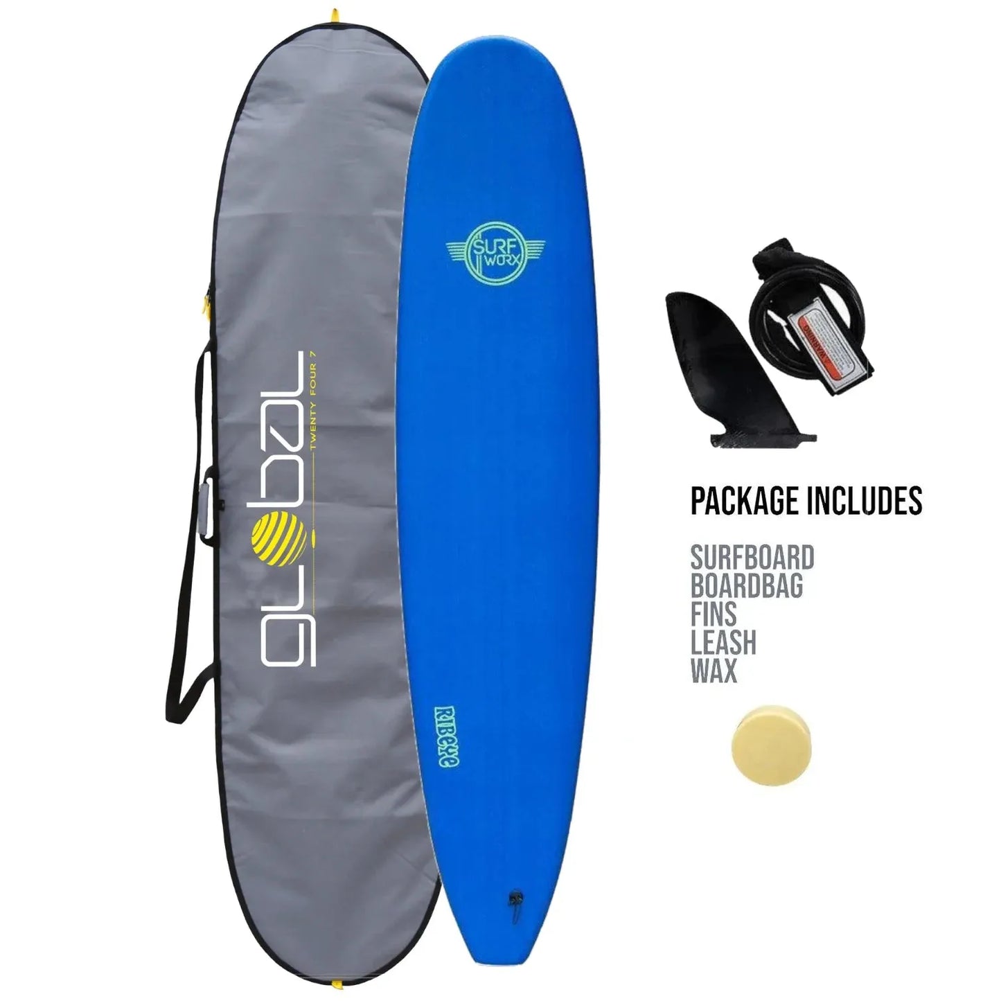 Surfworx Ribeye Blue Longboard Soft Surfboard 9ft 0 Starter Package